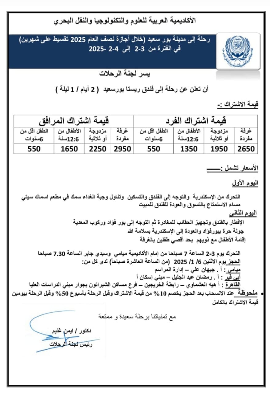 رحلة إلى مدينة بورسعيد فى أجازة نصف العام
