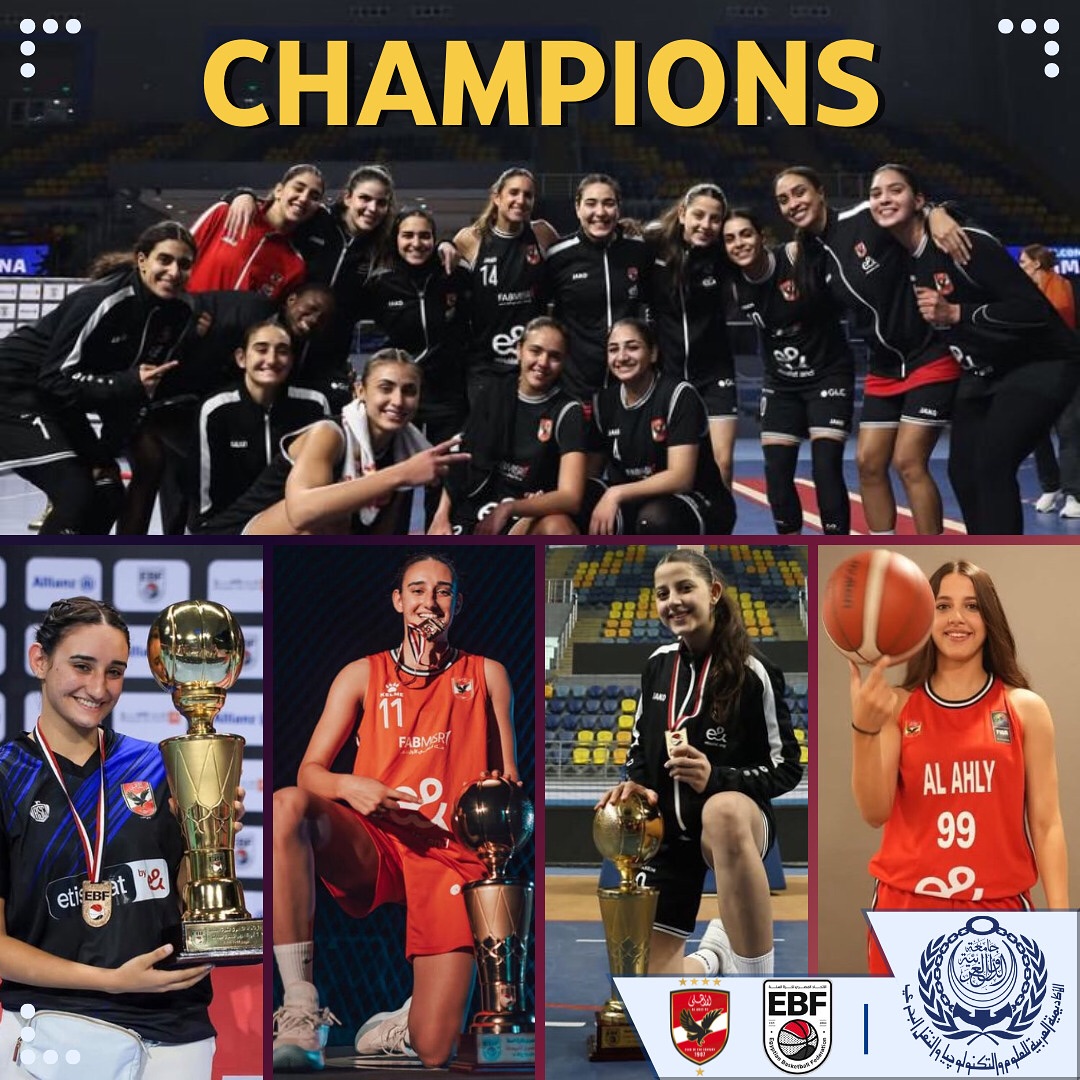 تتقدم إدارة الشئون الرياضية بفروع الأكاديميةالعربية للعلوم والتكنولوجيا بالقاهرة بالتهنئةلأبطالنا (جايدة خالد احمد) و (هناء سالم سليمان)نجوم النادى الأهلى لكرة السلةابناء الاكاديمية بمُناسبة:تحقيقهم لقب الدورى الممتاز (أ) للسيداتو المرتبط 2024.بعد تغلبهم فى المباراة النهائية على نادىسبورتنج فى مباراة ماراثونية انتهت لصالحالمارد الأحمر بنتيجة (84-74). (جايدة خالد احمد) المُقيدة بكلية النقل الدولىو اللوجيستيات – فرع الدقى.(هناء سالم سليمان) المُقيدة بكلية الإدارة –فرع القرية الذكية. مـبروك لأبطالنا وفخورين دايماً بيكموتمنياتنا لكم بدوام النجاح والتوفيق فيماهو قادم بإذن الله.#أبطال_الأكاديمية#الأهلى#الاهلي_المصري Share: