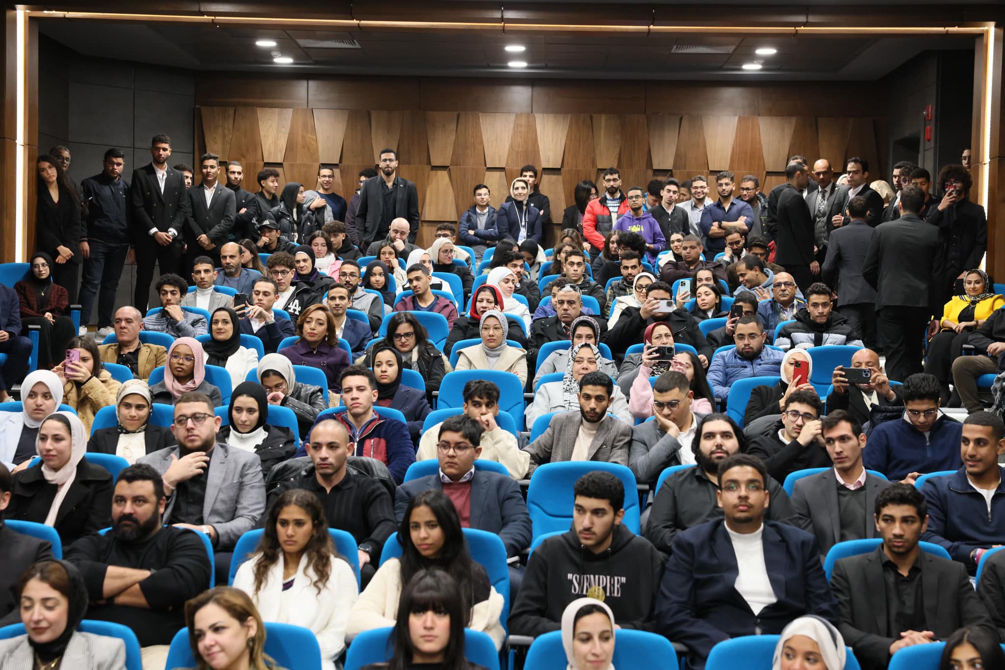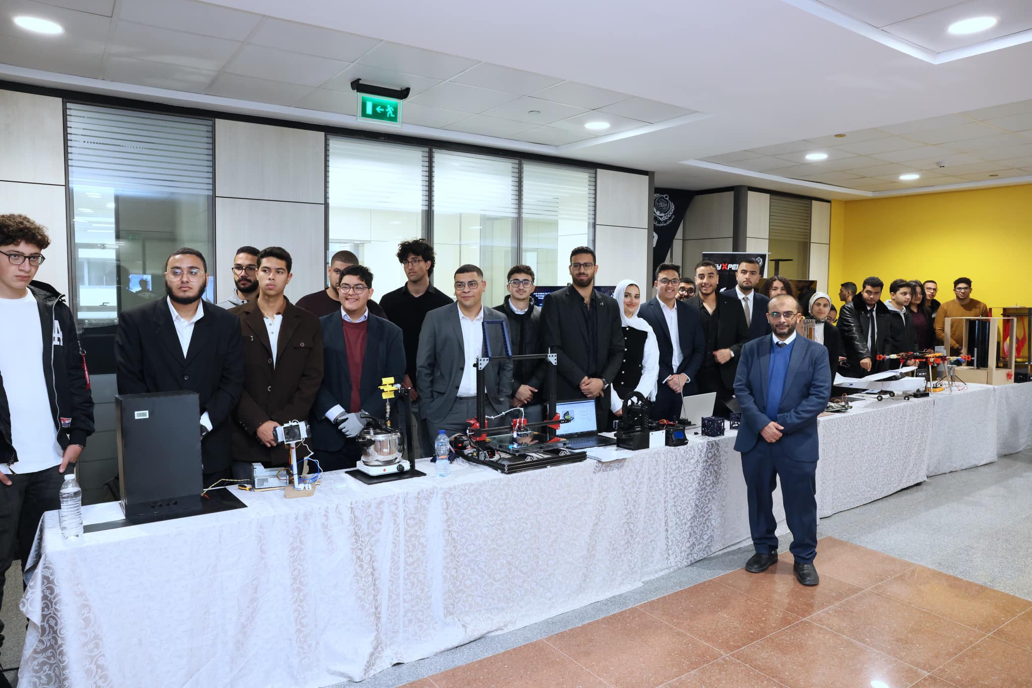 وألقى المهندس جلال سلامة، المهندس بشركة أمازون العالمية والمهندس السابق بشركة تيسلا في ولاية تيكساس، كلمة تحفيزية للطلاب، حيث سلط الضوء على أهمية الابتكار والتطوير في المجال الهندسي