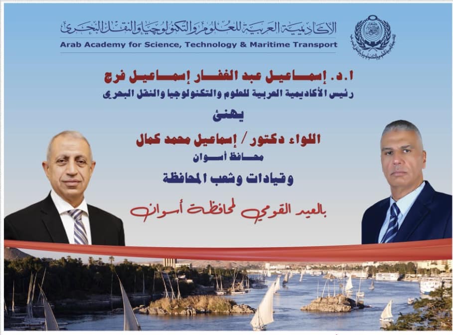 لمعالي اللواء الدكتور اسماعيل كمال – محافظ اسوان والجهاز التنفيذى ومواطنى محافظة اسوان بمناسبة عيد اسوان القومى متمنيا كل التقدم والازدهار لاسوان الحبيبة ومصرنا الغالية تحت قيادة فخامة السيد الرئيس عبدالفتاح السيسى رئيس الجمهورية