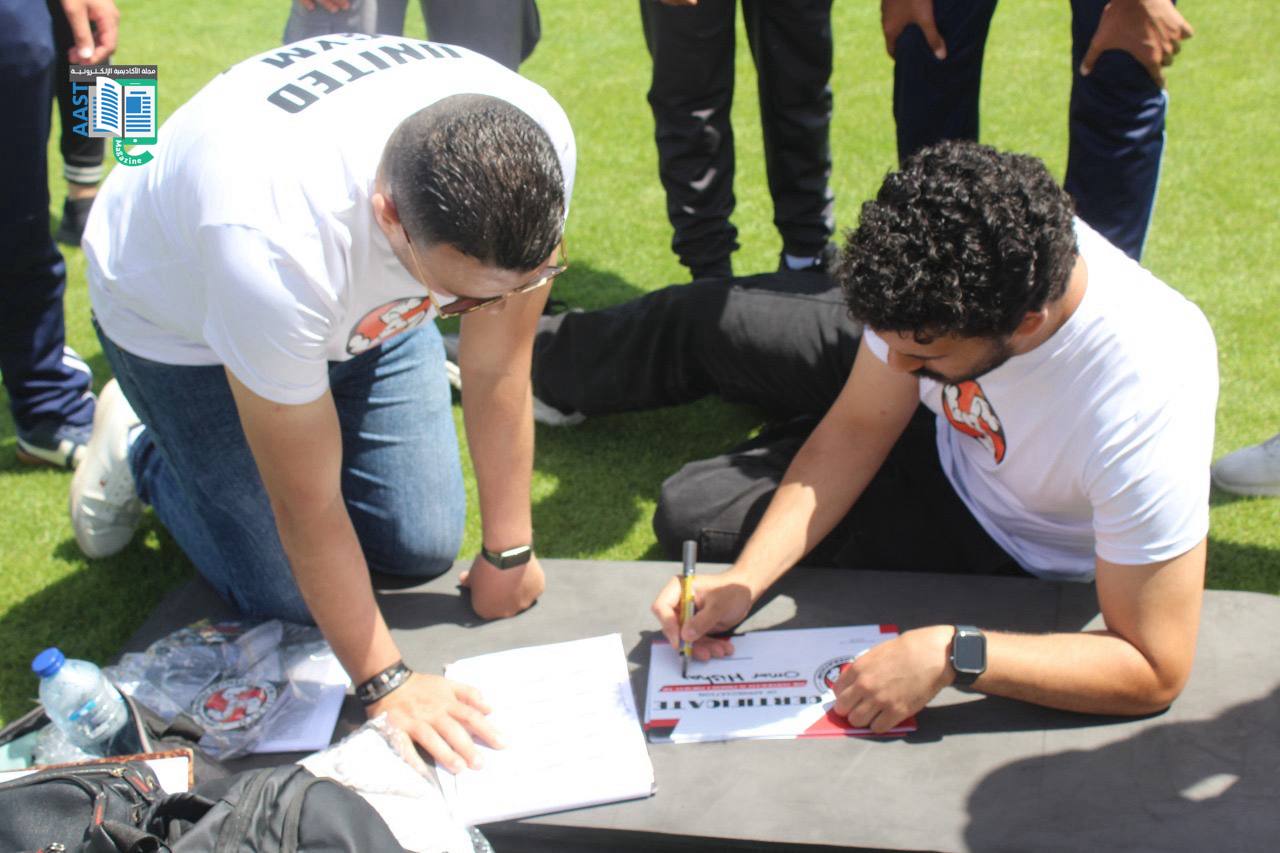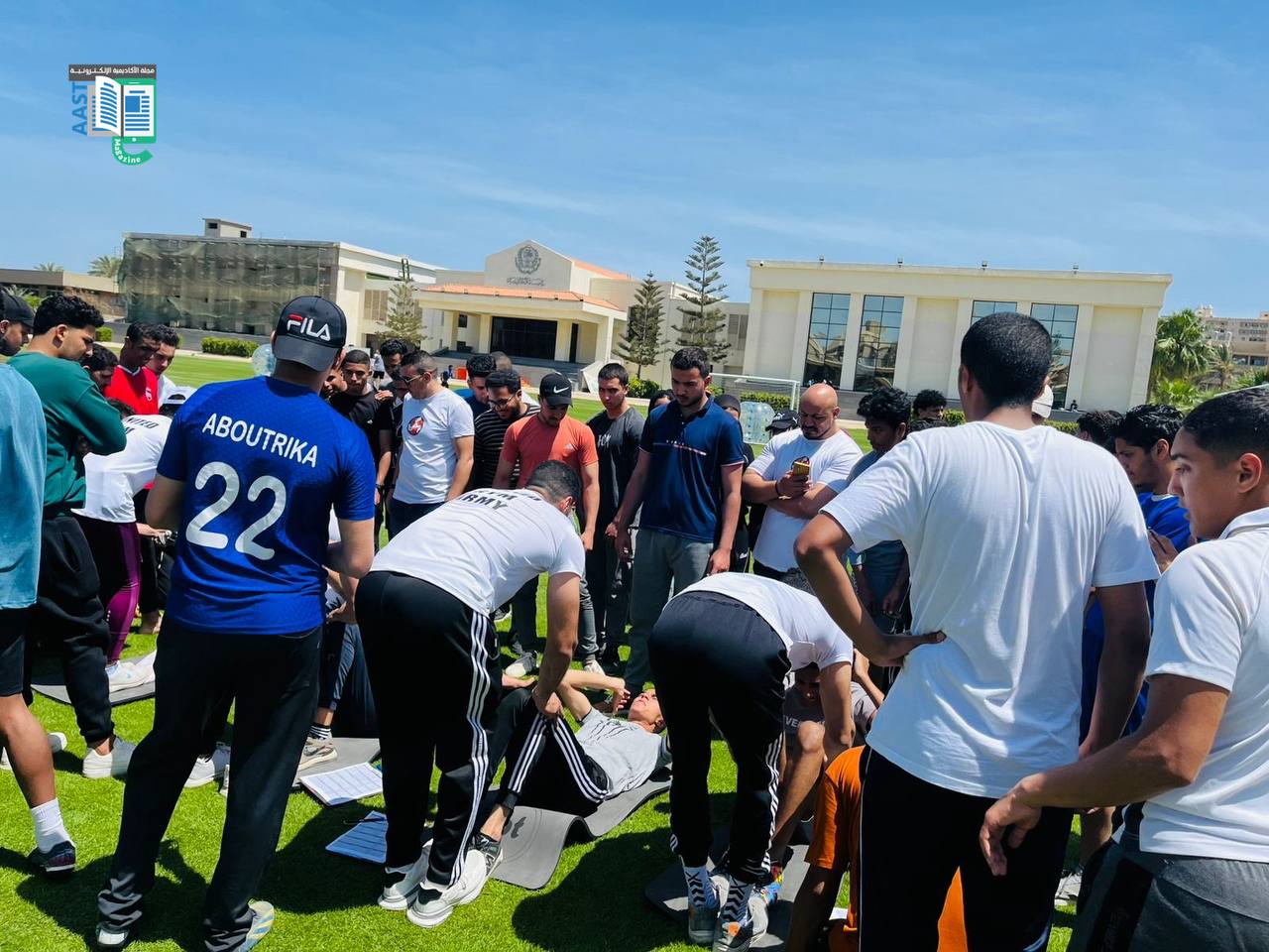 أقيم اليوم الرياضي لمعهد الدراسات التقنية و المهنية التابع لمجمع خدمة الصناعة علي أرضية الملعب الرئيسي للأكاديمية العربية للعلوم والتكنولوجيا والنقل البحري بأبي قير