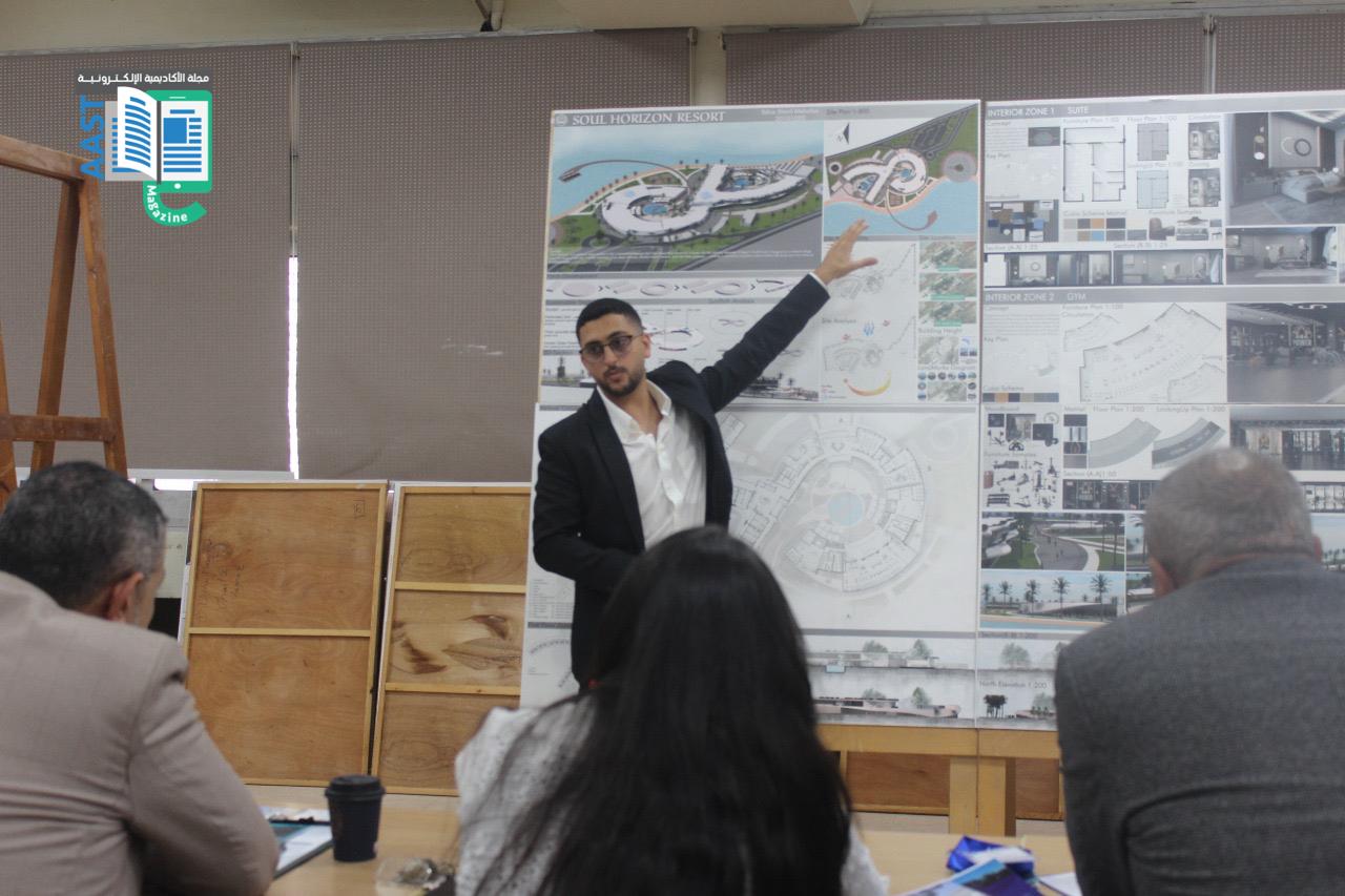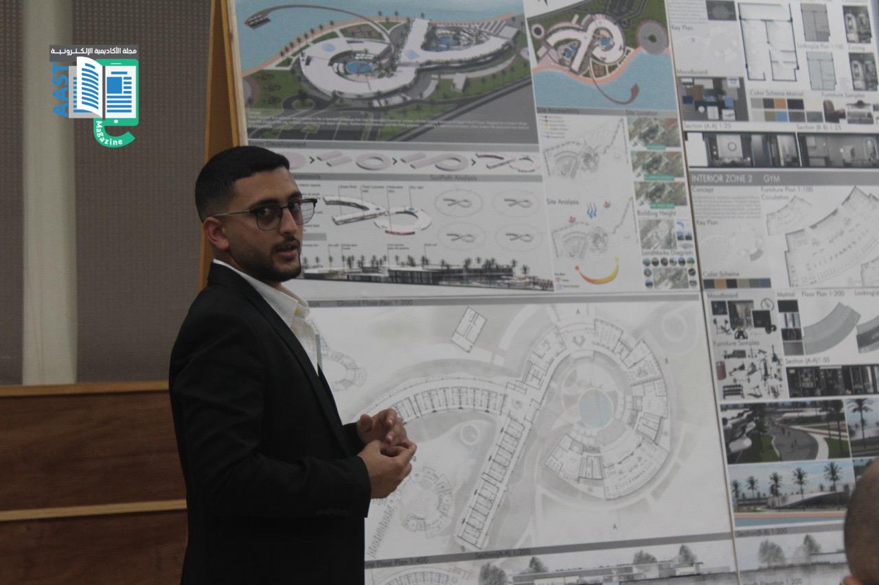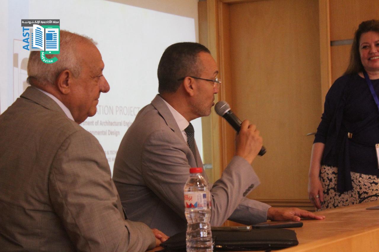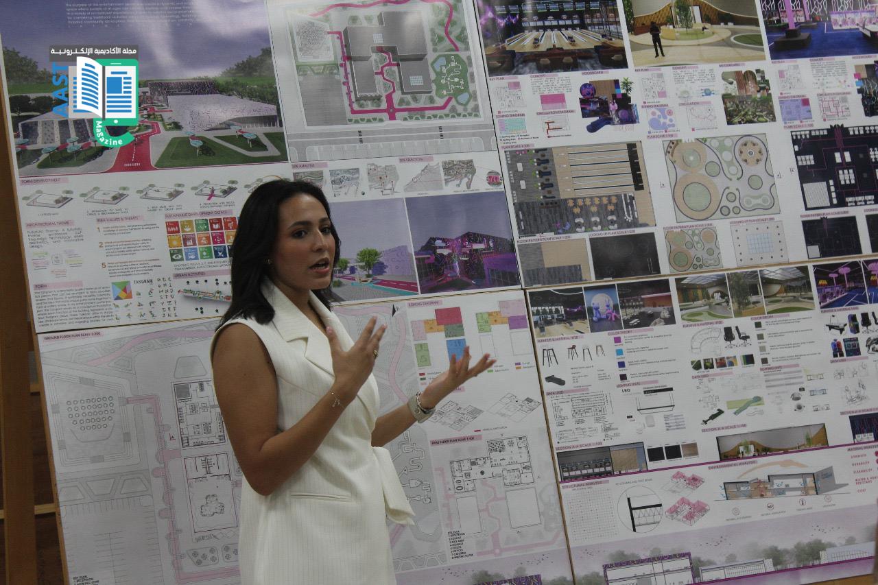 بدأ اليوم باستعراض مشاريع التخرج لطلاب الهندسة المعمارية والتصميم البيئي في مبنى كلية الهندسة والتكنولوجيا بالفرع الرئيسي للأكاديمية العربية في أبو قير بالإسكندرية. بعد استعراض المشاريع، ألقى الأستاذ الدكتور/ أكرم سليمان السلمي، عميد كلية الهندسة والتكنولوجيا، كلمة رئيسية في قاعة مبنى G. كما ألقت الاستاذ الدكتورة/ مي عباس يحيى، رئيس قسم الهندسة المعمارية كلمة ترحيبية موضحة رؤية القسم وأهدافه في تكوين خريج قادر علي التعامل مع التحديات المختلفة