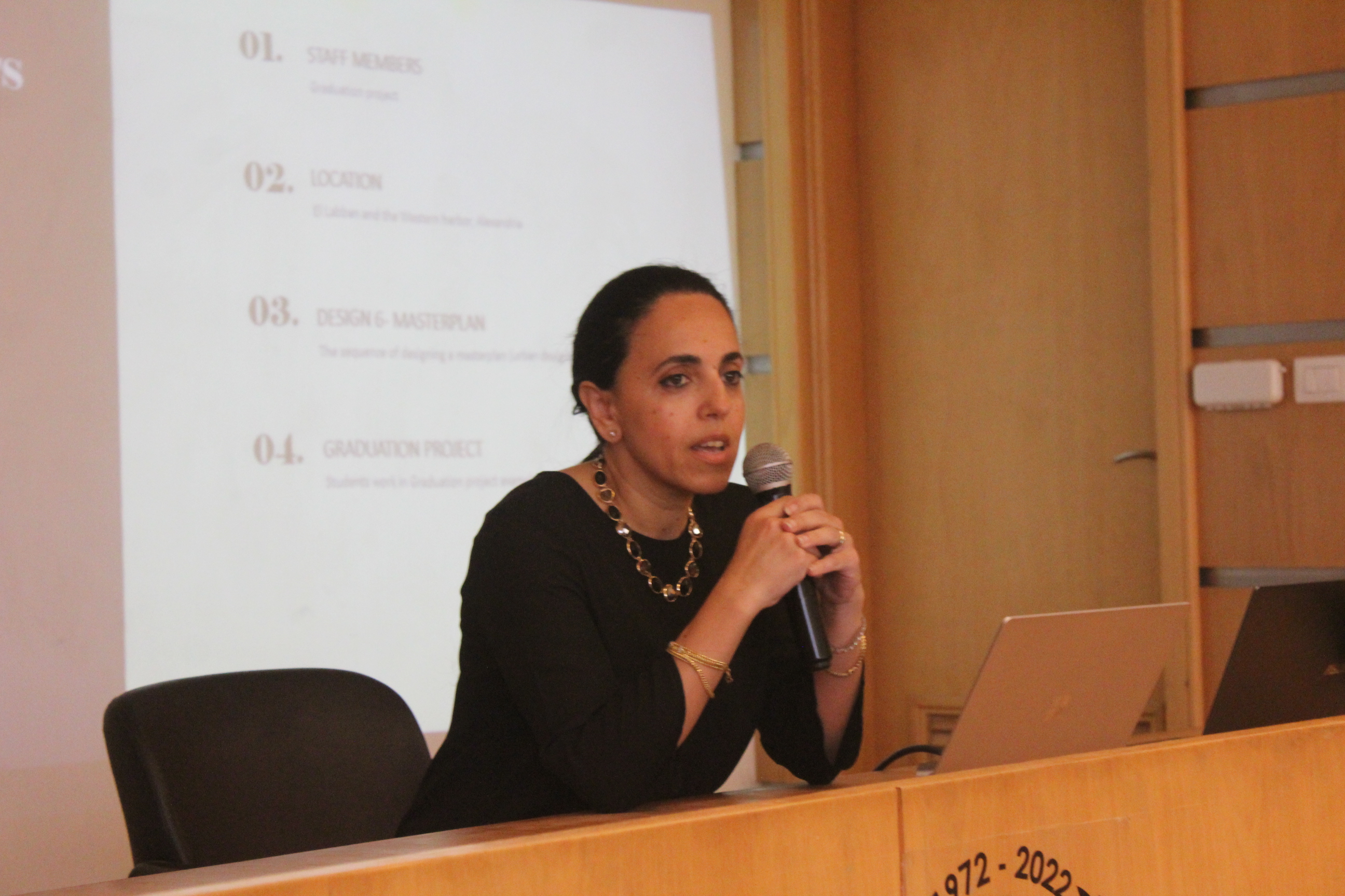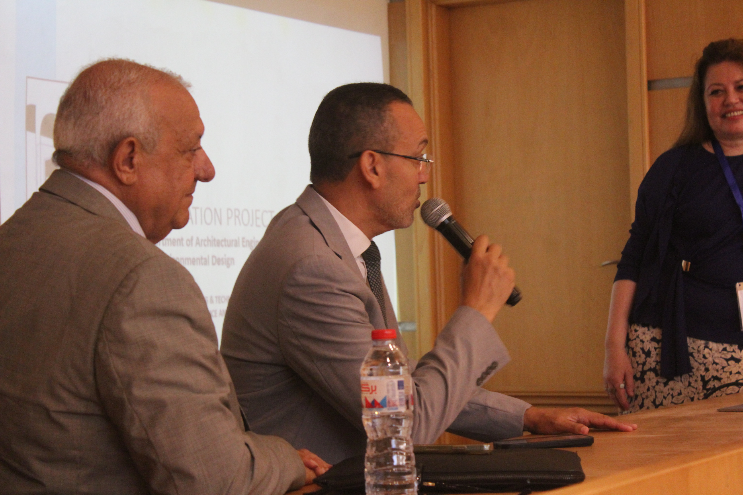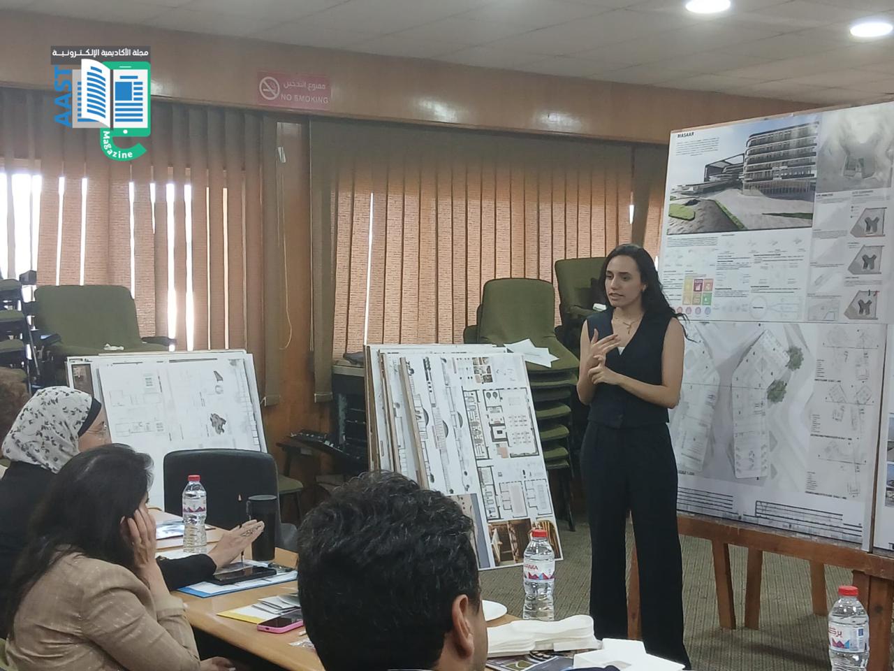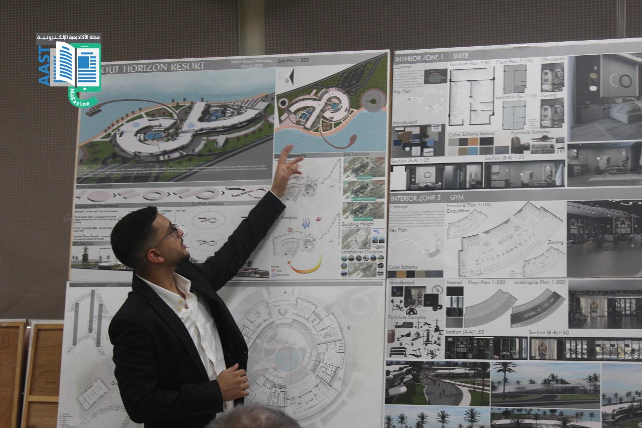 بدأ اليوم باستعراض مشاريع التخرج لطلاب الهندسة المعمارية والتصميم البيئي في مبنى كلية الهندسة والتكنولوجيا بالفرع الرئيسي للأكاديمية العربية في أبو قير بالإسكندرية. بعد استعراض المشاريع، ألقى الأستاذ الدكتور/ أكرم سليمان السلمي، عميد كلية الهندسة والتكنولوجيا، كلمة رئيسية في قاعة مبنى G. كما ألقت الاستاذ الدكتورة/ مي عباس يحيى، رئيس قسم الهندسة المعمارية كلمة ترحيبية موضحة رؤية القسم وأهدافه في تكوين خريج قادر علي التعامل مع التحديات المختلفة