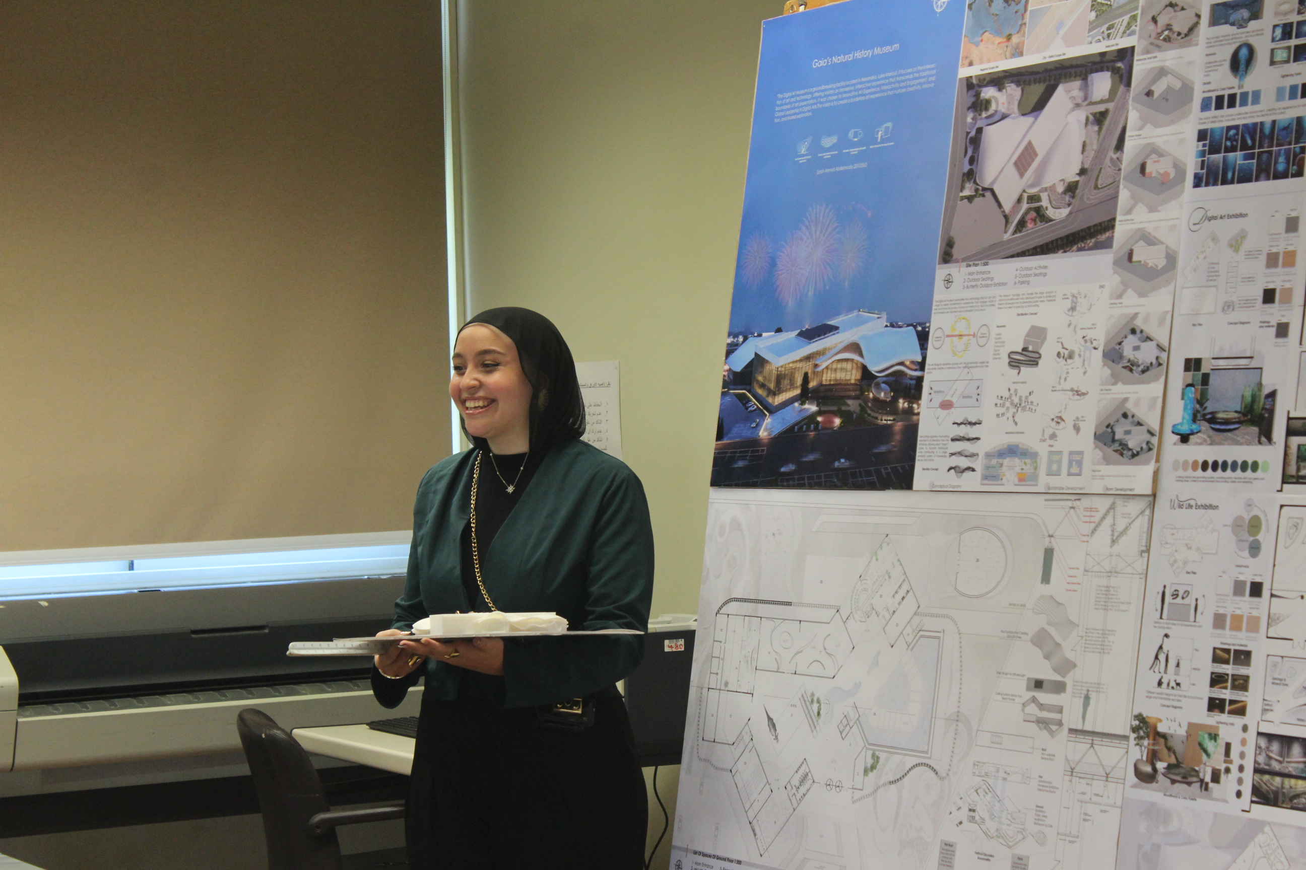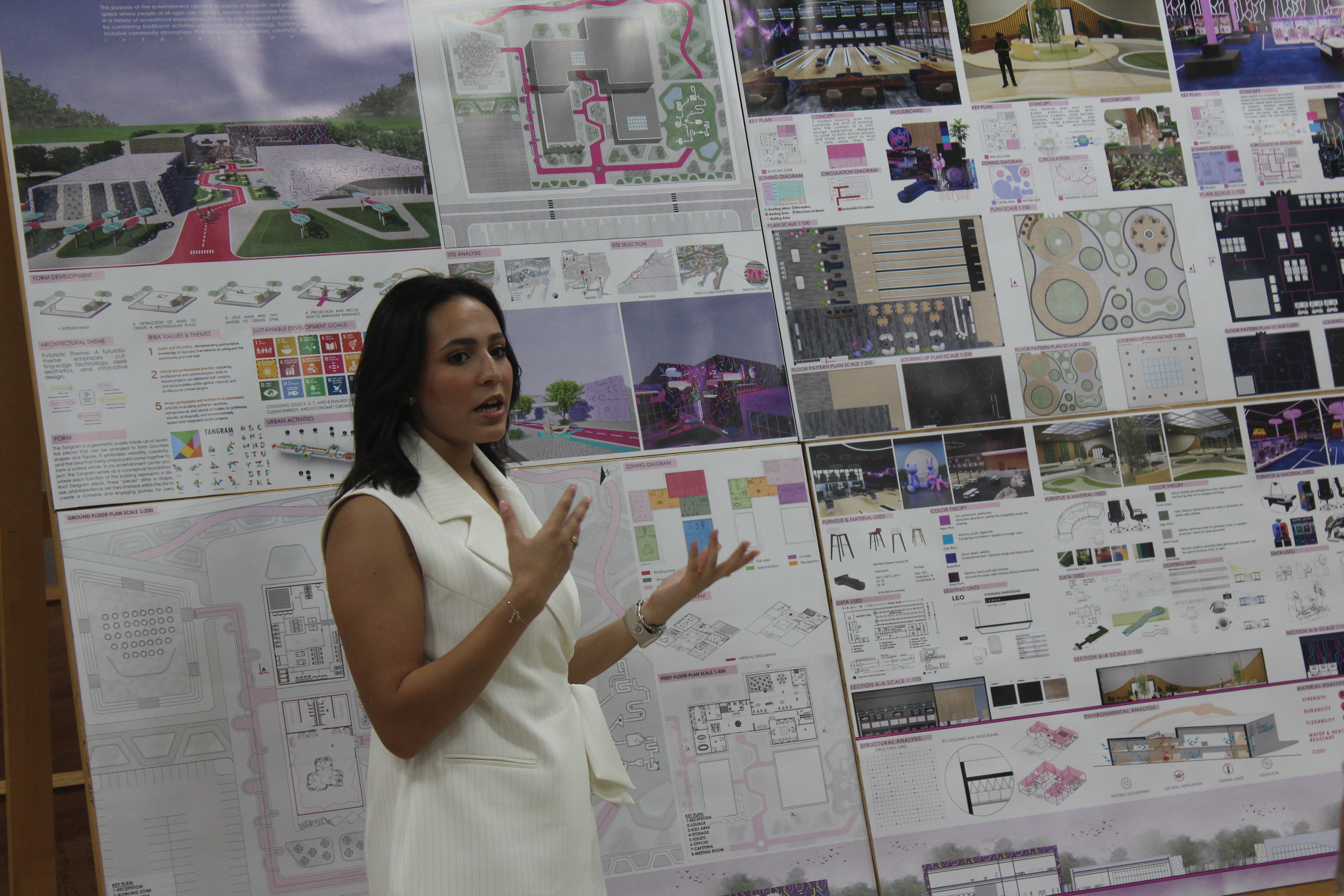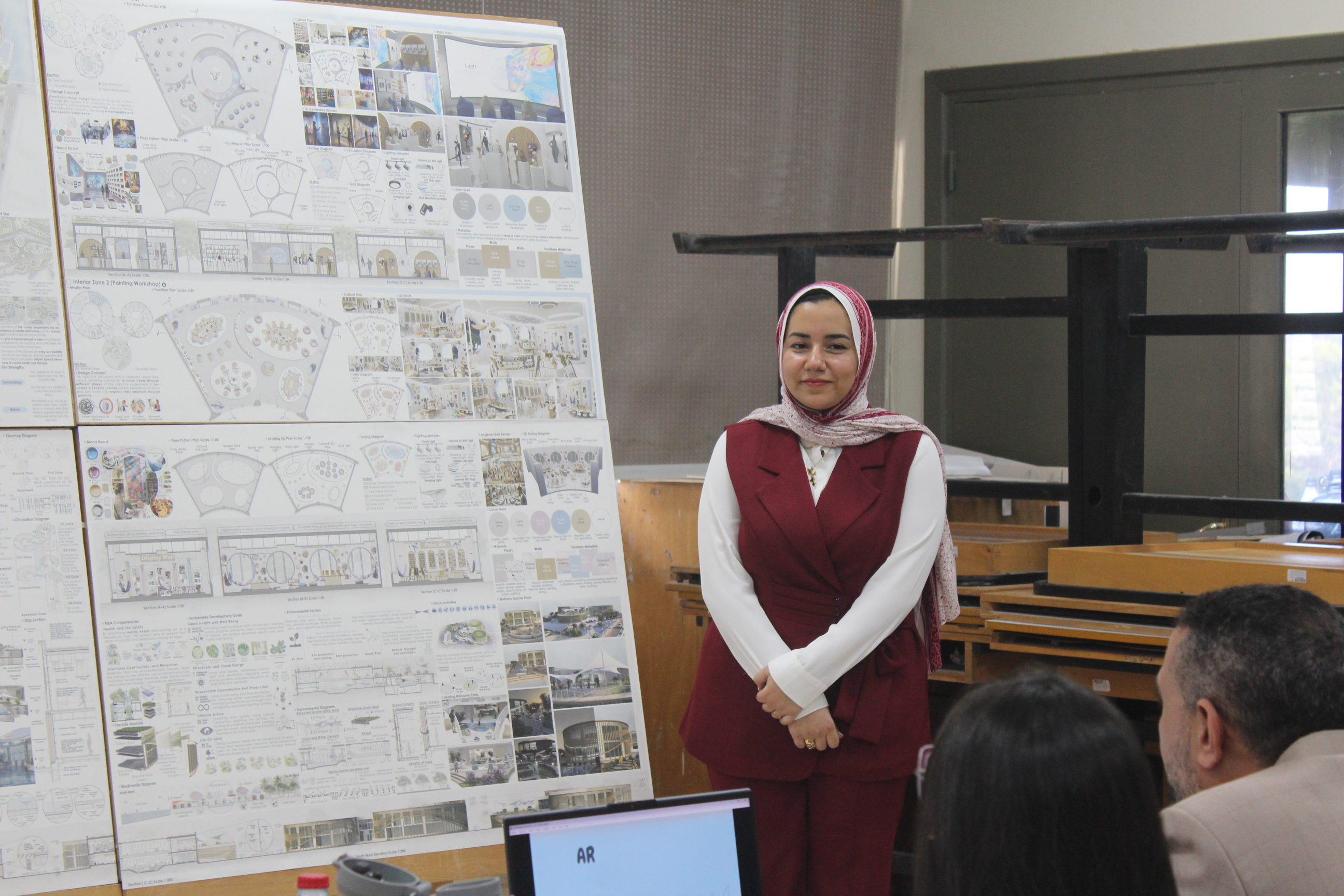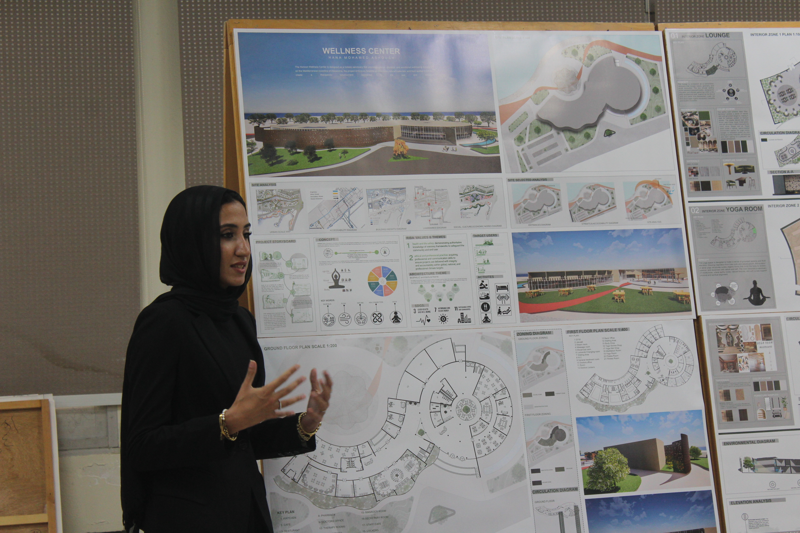 بدأ اليوم باستعراض مشاريع التخرج لطلاب الهندسة المعمارية والتصميم البيئي في مبنى كلية الهندسة والتكنولوجيا بالفرع الرئيسي للأكاديمية العربية في أبو قير بالإسكندرية. بعد استعراض المشاريع، ألقى الأستاذ الدكتور/ أكرم سليمان السلمي، عميد كلية الهندسة والتكنولوجيا، كلمة رئيسية في قاعة مبنى G. كما ألقت الاستاذ الدكتورة/ مي عباس يحيى، رئيس قسم الهندسة المعمارية كلمة ترحيبية موضحة رؤية القسم وأهدافه في تكوين خريج قادر علي التعامل مع التحديات المختلفة