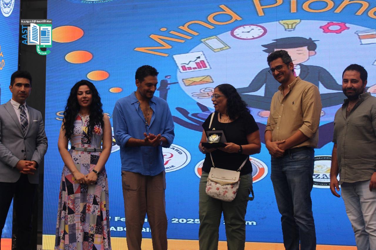 قام الدكتور / أحمد الحمامي بتكريم الفنان / أحمد صفوت علي حضوره ودعمه للطلاب وأيضاً قام بتكريم المذيعة / مروة عاطف – مذيعة قناة الشمس علي حضورها